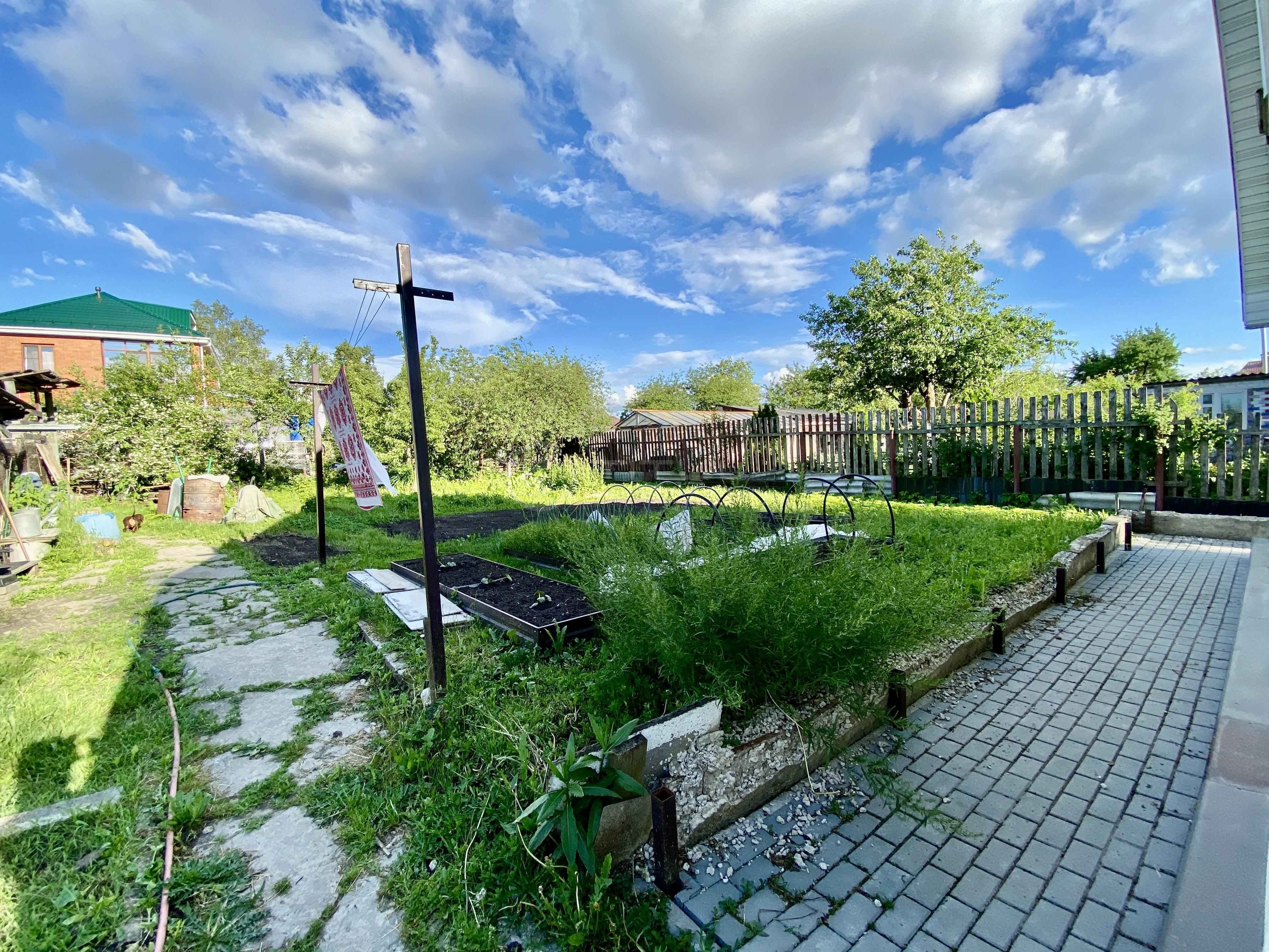 Ухоженный участок с плодовыми деревьями, сарай для инвентаря, есть возможность установить беседку, баню. Навес для автомобиля с автоматическими воротами, тротуарная плитка возле дома. Дружелюбные соседи, вся инфраструктура для комфортного проживания - школа, детский сад, почта, магазины, остановка общественного транспорта.